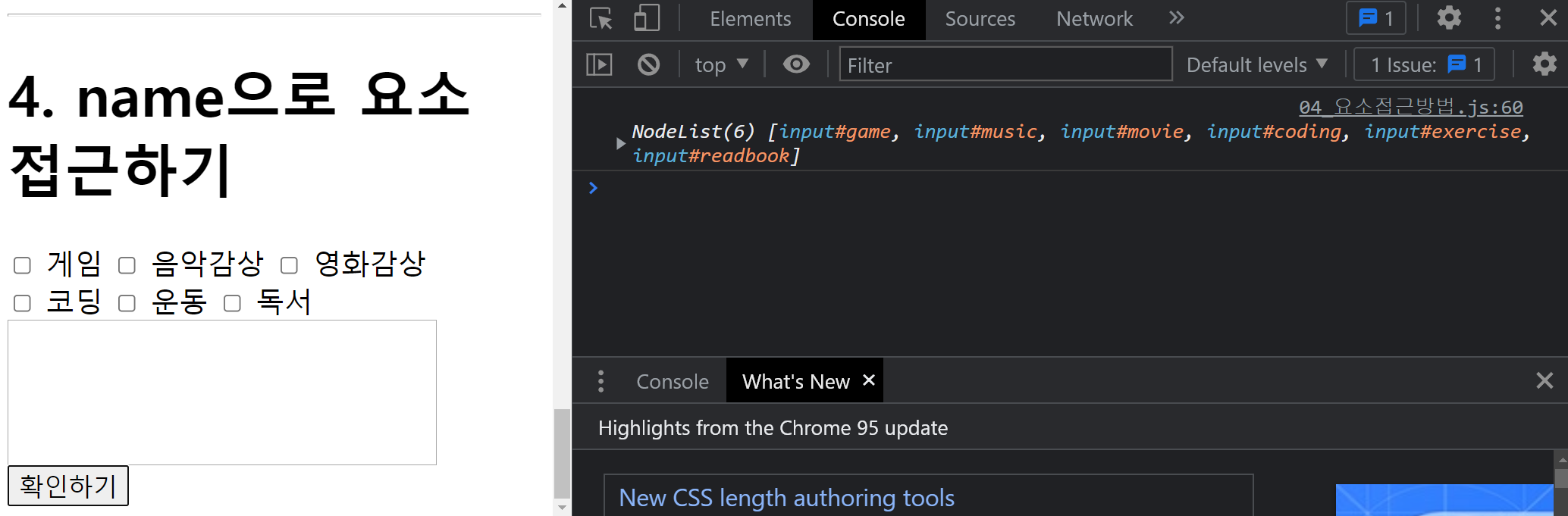 이름으로 접근하면 NodeList라는 다른 객체로 배열은 아니지만 비슷하다.