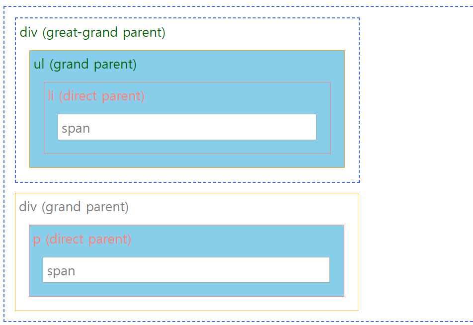 // span 태그부터 상위 요소 중 div 태그를 만나기 전까지