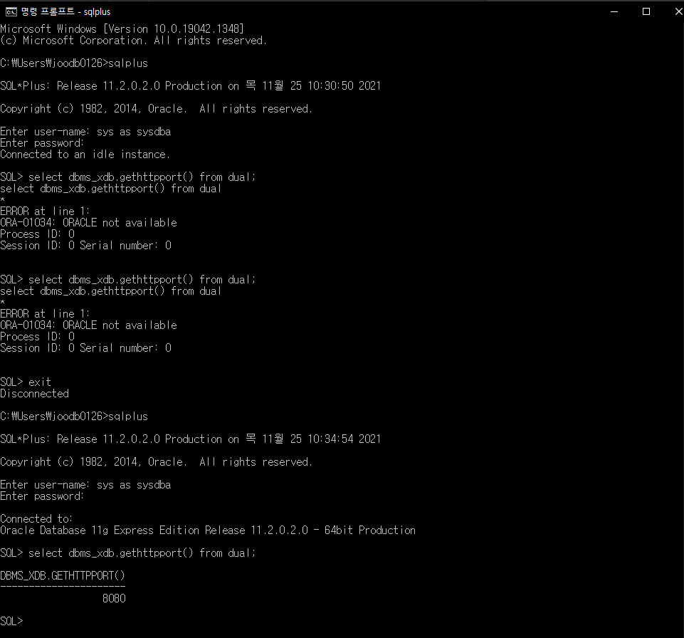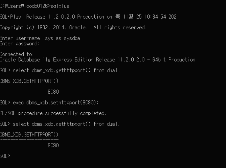 3-5) exec dbms_xdb.sethttpport(9090); --> 여기서 에러 발생