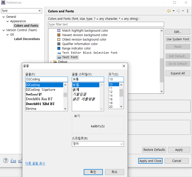 : text tile encoding 설정 -> UTF-8 -> Apply
