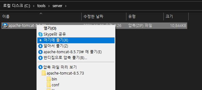 - 버전 8의 zip 다운 -> 사용할 폴더에 저장