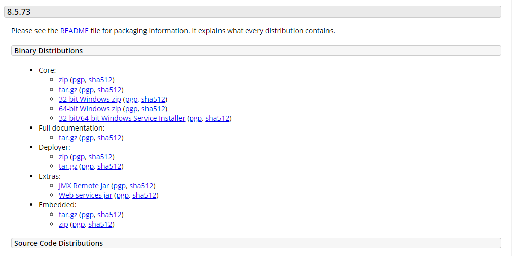 - Apache Tomcat은 자바와 연관이 많은 회사로 실무에서는 톰캣 7, 8을 쓴다고하는데 지금은 공부하는 용으로 설치할 것이기 때문에 버전8을 설치한다.