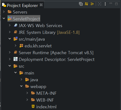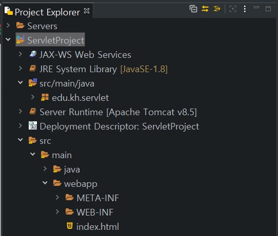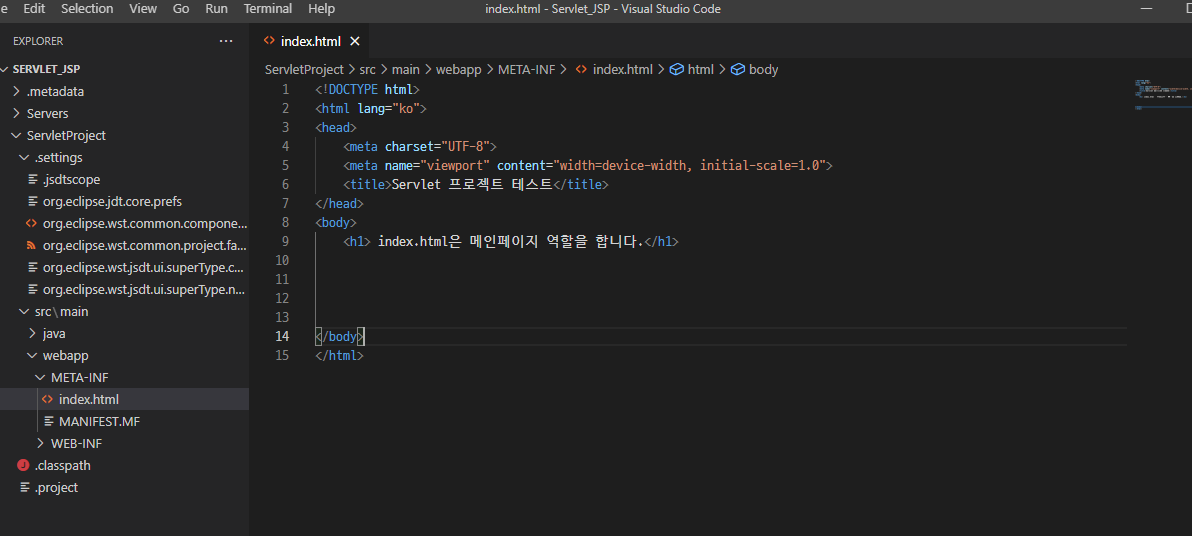 ServletProject - webapp - Meta-INF - .html 파일 생성해서 코드 작성