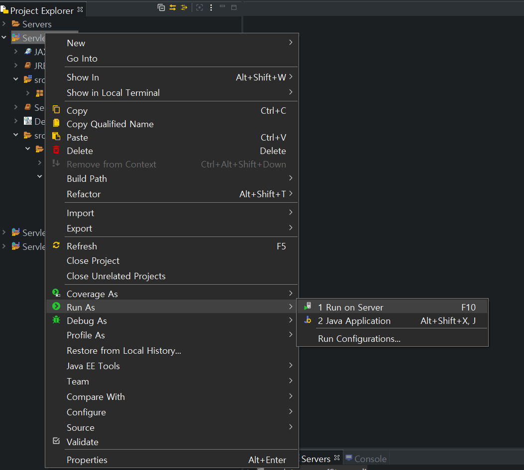 4-1) 해당 프로젝트 우클릭 - Run As - Run on Server
