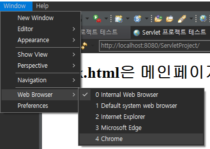 Window - Web Browser - 4 Chrome 으로 설정하면 크롬 창에서 확인 할 수 있다.