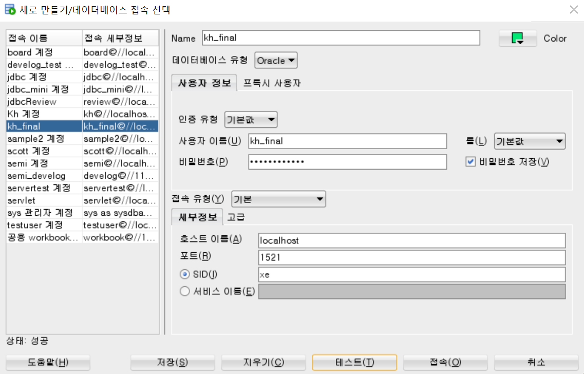 오라클에서 계정 비밀번호 변경 구문을 써서 해결했습니다.