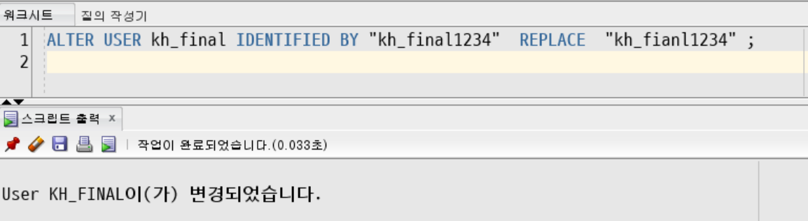 ALTER USER BADA IDENTIFIED BY "새비밀번호" REPLACE "이전비밀번호" ;