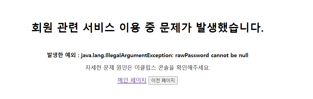 패스워드 값을 받아오는 과정에서 값이 넘어오지 못하고 null이 넘어왔다