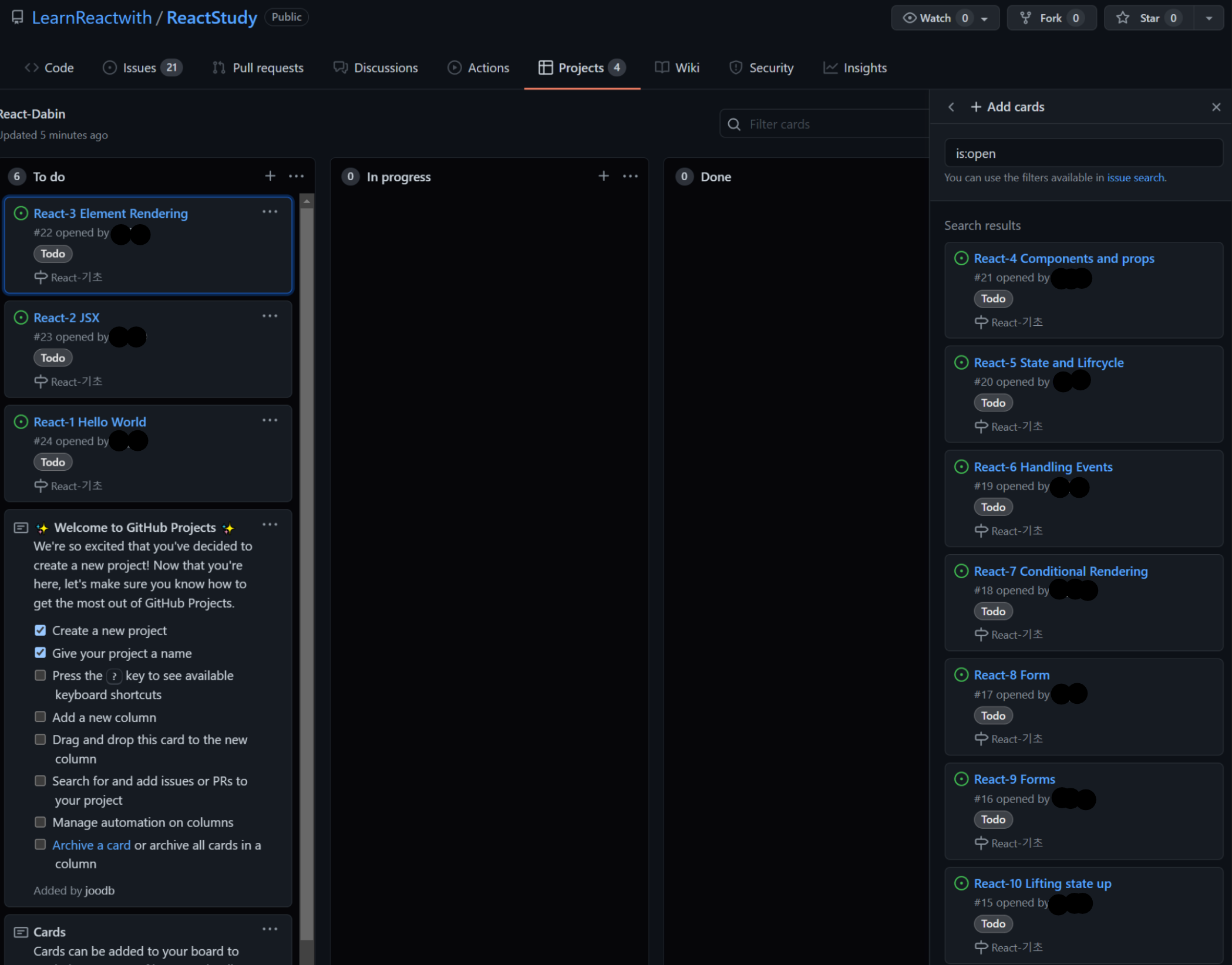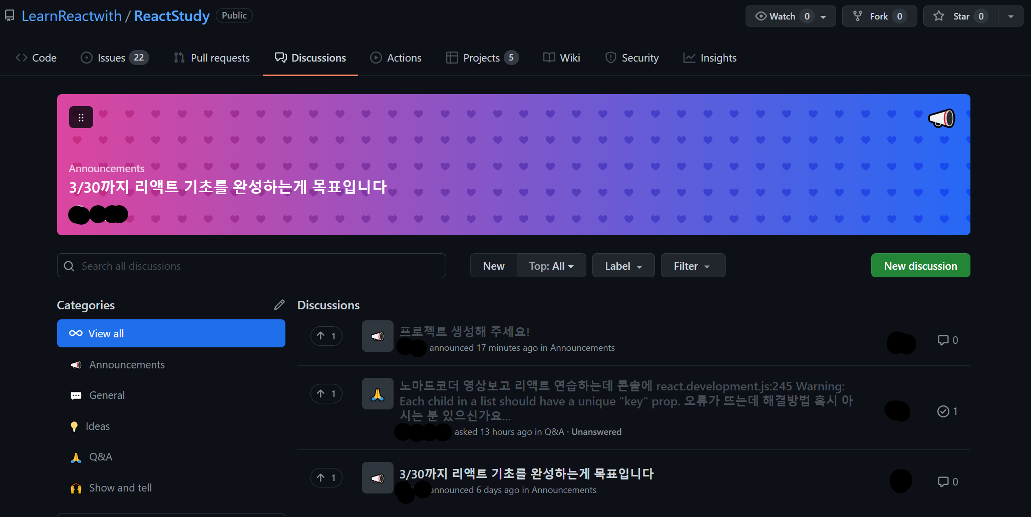 Discussions : 공부관련으로 질문을 주고받기 유용하다.