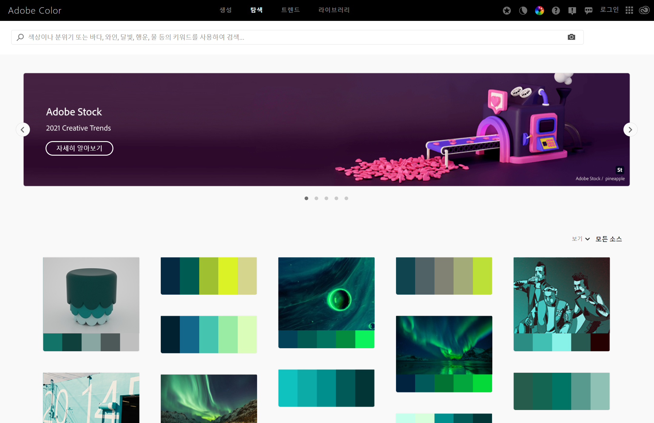 원하는 컬러는 잠금 표시를 해 고정해 두며 다른컬러와의 조합을 해볼 수 있습니다.