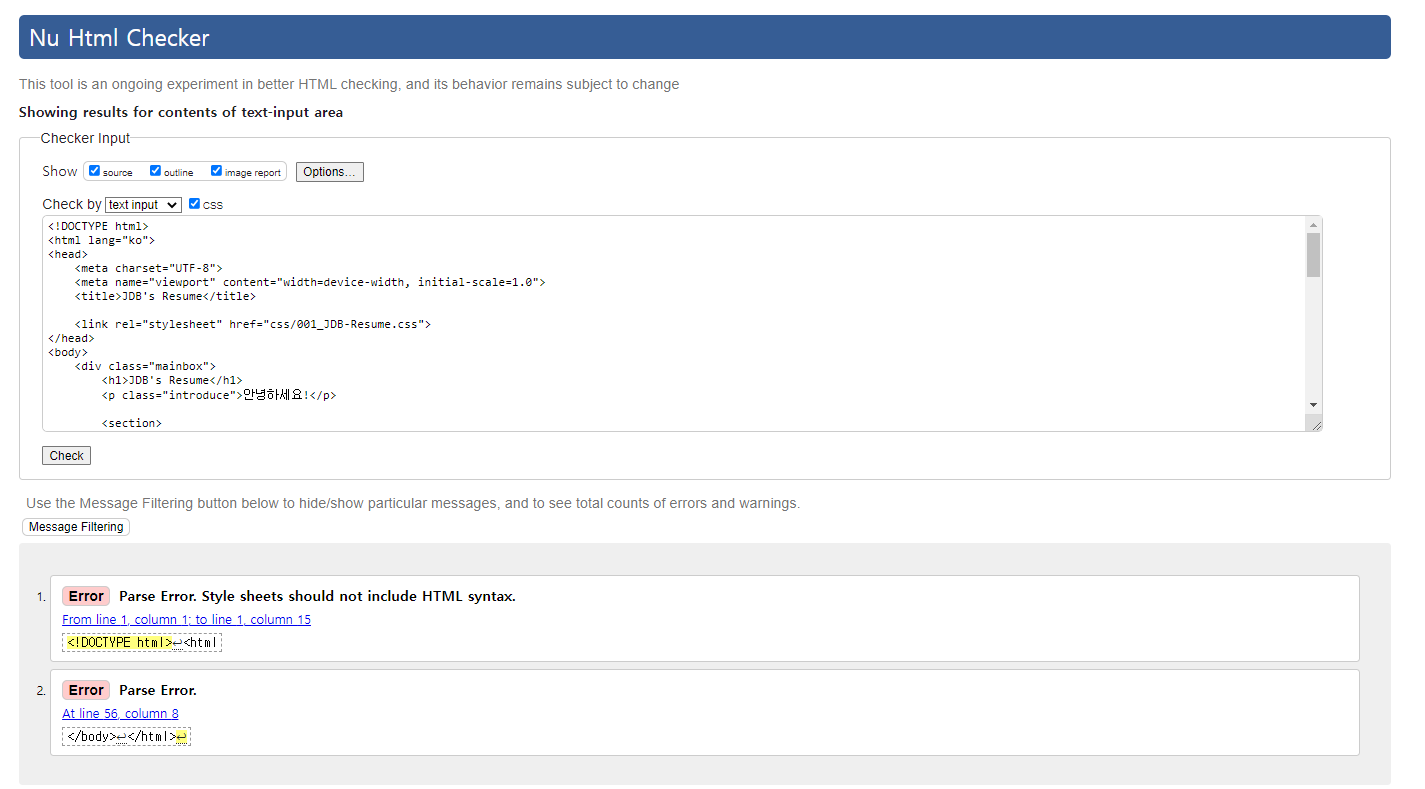 Error : 웹표준을 지키지 않아서 수정해야한다.