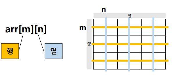 arr[1][3] 앞에[1] == 행, [3] == 열