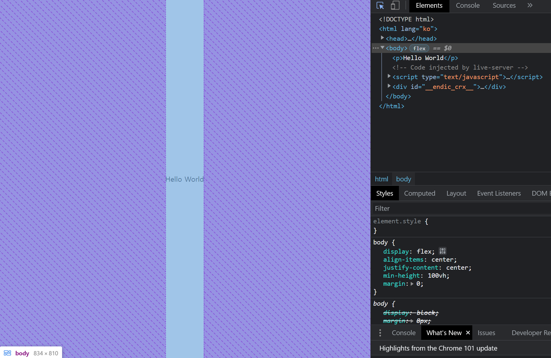 여기서 헷갈리는 점은 height : 100vh;와 min-height : 100vh;의 결과가 같아 보인다는 점이다.