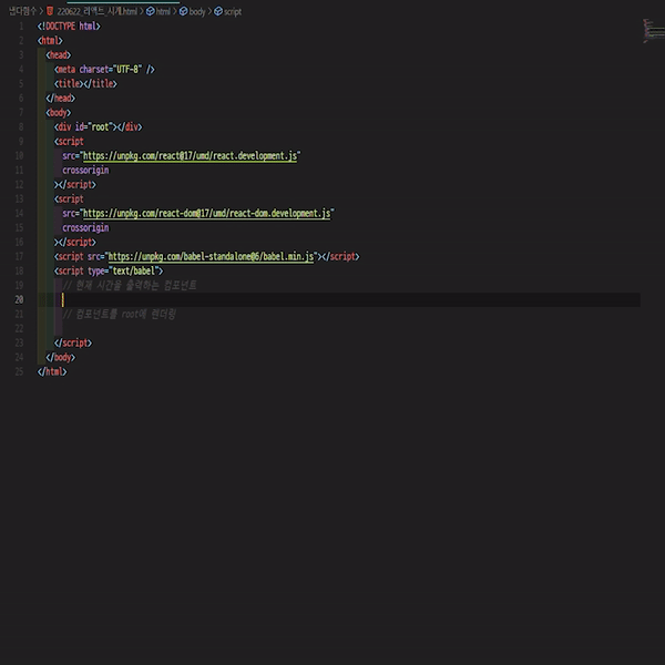 지금 리액트를 공부중이기때문에 이번에 외운 함수는 리액트로 시계만들기이다.