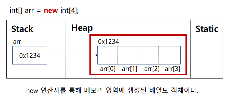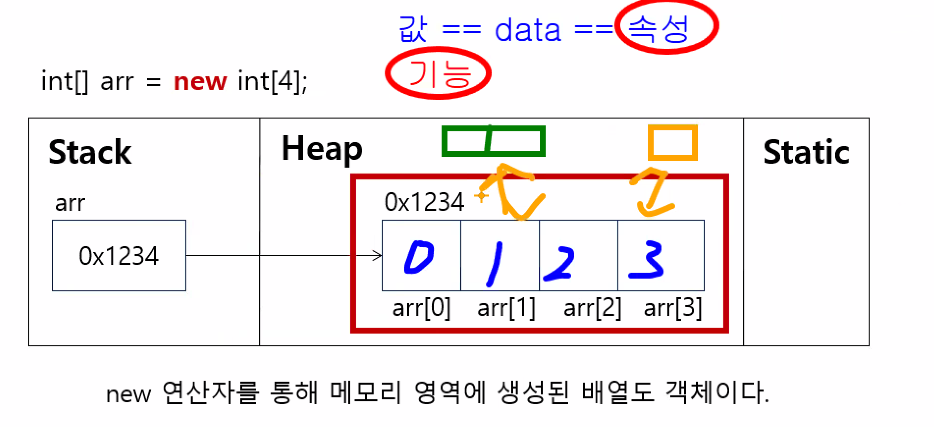 ⭐: 클래스에 정의된 내용대로 new 연산자를 통해 메모리 영역(Heap)에 생성된 것, 객체를 만들기 위해서 설계도(클래스)가 필요