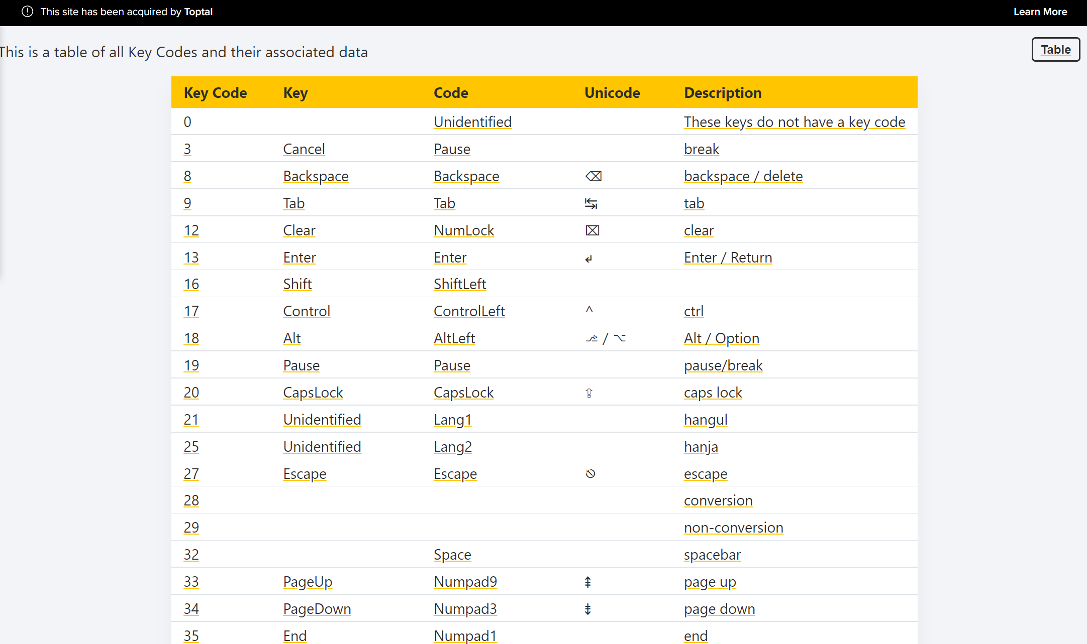 https://www.toptal.com/developers/keycode/table-of-all-keycodes