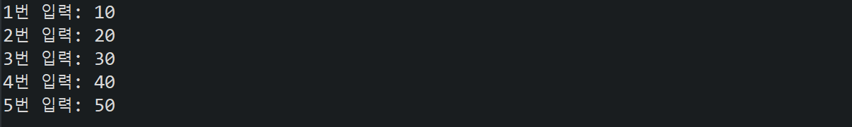 응용1)정수 5개를 입력 받아 합계 출력