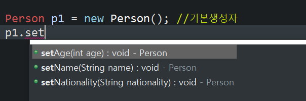➡ s1. 입력 후 상속 받은 부모의 setter/getter가 자동완성 구문에 포함되어있는지 확인!!