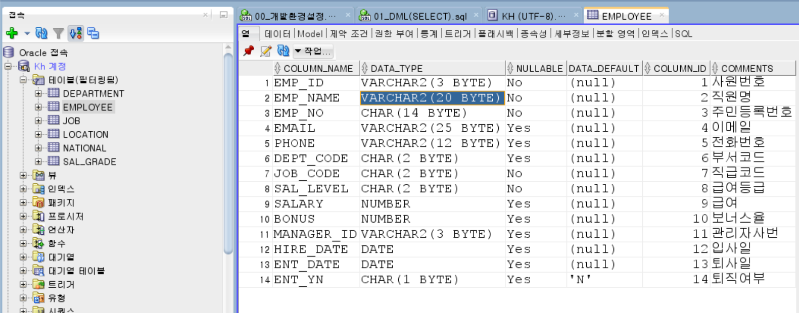 EMPLOYEE- 열에서 코멘트를 통해 파악하기