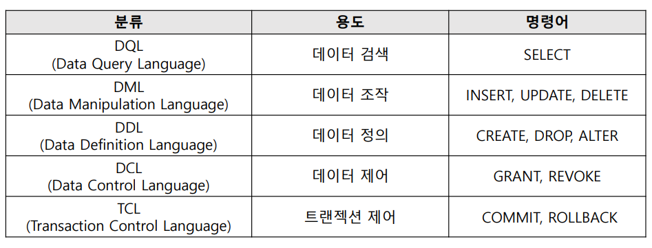 관계형 데이터베이스(RDBMS)에서 데이터를 조회하거나 조작하기 위해 사용하는 언어