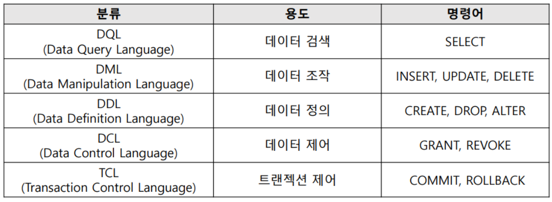 SQL문의 의해 영향을 받는 각 ROW에 따른 분류