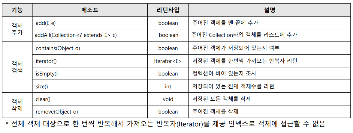 컬렉션에 저장된 요소를 접근하는데 사용되는 인터페이스