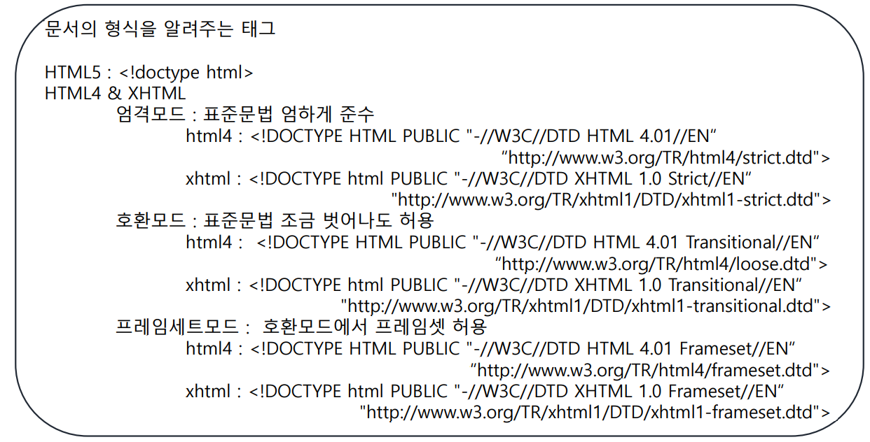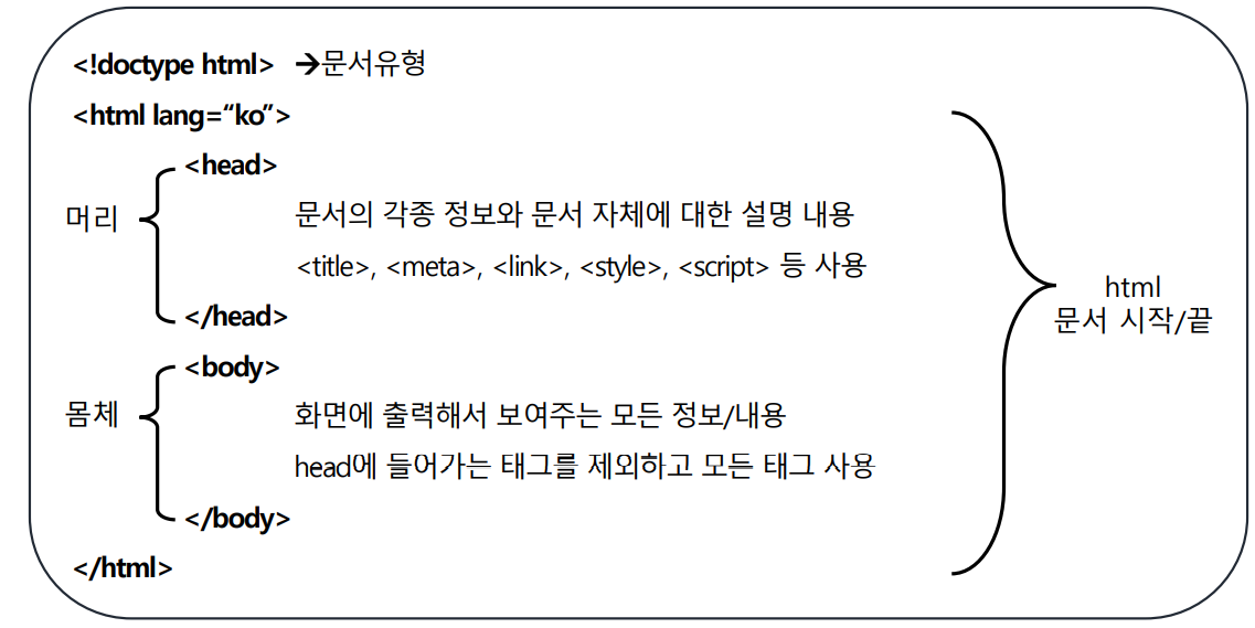 - 태그는 대 · 소문자를 구분하지 않으나 소문자를 권장함
