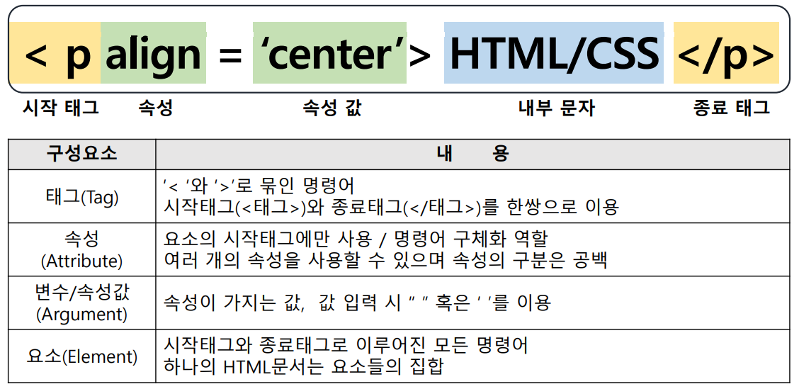 - 시작태그로 시작하면 반드시 종료태그로 종료