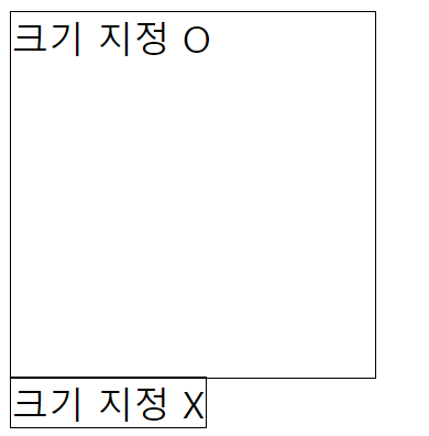 <div style="width : 200px; height: 200px;"> 크기 지정 O </div> <span style="width : 200px; height: 200px;"> 크기 지정 X </span>