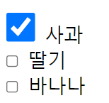 /* input 태그 중 name 속성값이 fruits이 요소에 체크가 되었을 때 */ input[name="fruits"]:checked { width: 30px; height: 30px; }<input type="checkbox" name="fruits" checked> 사과 <br> <input type="checkbox" name="fruits"> 딸기 <br> <input type="checkbox" name="fruits"> 바나나 <br>checkbox에는 크기를 제외한 스타일이 적용되지 않는다.